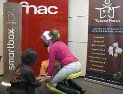 O templo da massagem, especializada terapêuticos e massagens relaxantes e tratamentos de beleza centros de franquia, em colaboração com a Smartbox oferecida os seus serviços de massagem e manicure na Fnac Parquesur em Leganés, Madrid, recebendo mais de 100 pessoas durante todo o dia