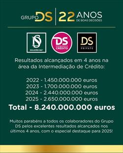 Estes números são fruto da dedicação e talento das nossas equipas, que reforçam diariamente o compromisso em garantir o melhor serviço e as melhores decisões para os nossos clientes. Obrigado a todos os que fazem parte desta viagem de sucesso e que nos ajudam a consolidar o Grupo DS como referência no mercado.